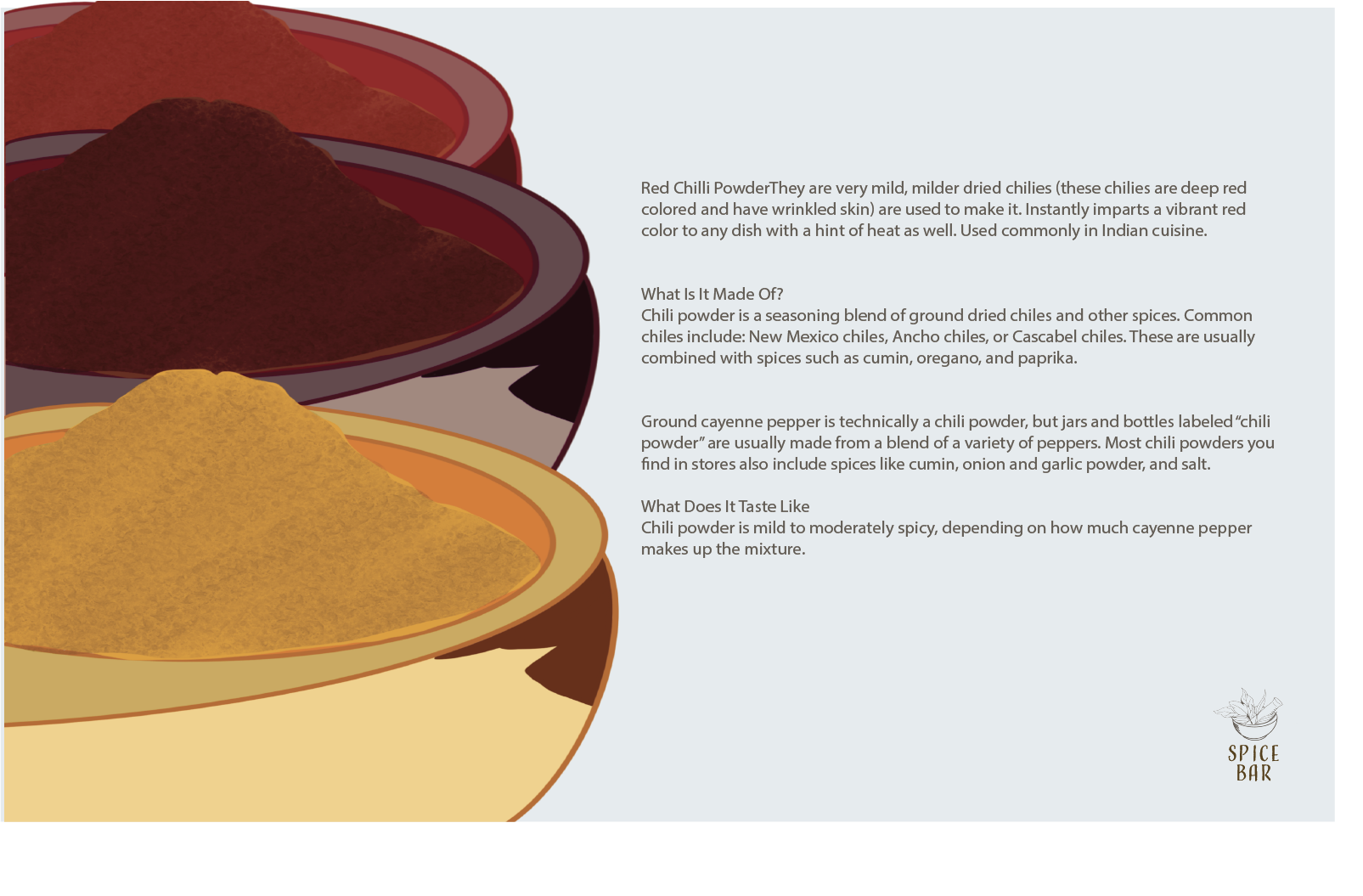 Spice Bar is the project that is Indian homemade spices. As most of the Indian miss that authentic Indian taste in food. This spice bar brings that authentic flavour and colour to your food. Spice bar makes the spices for everyone people who are into Indian food, maybe wants to learn about Indian food. It includes the spice cards which helps what is the specific spice for and how much to use. You can order in any amount, as the spice bar have packages from 10gm- 100gm, customers can order whatever amount and also spices are good for 1-2 years.